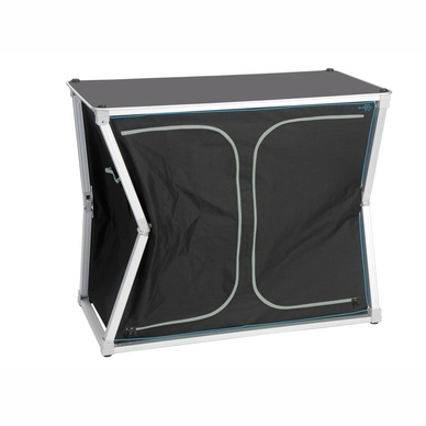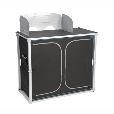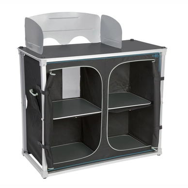 Un îlot de cuisson compact avec une construction unique de la marque Bo-Camp. En raison de sa construction unique, cette armoire peut être repliée et dépliée très rapidement et facilement. Super pratique! L’armoire a une couverture en polyester 600 deniers extra robuste avec 4 étagères. Le dessus de cet îlot de cuisine est étanche, résistant à la chaleur et équipé d’un pare-brise. Il convient à une cuisinière à gaz à 4 brûleurs et les pieds réglables individuellement garantissent que l’armoire est stable sur n’importe quelle surface. Livré dans un étui de transport.