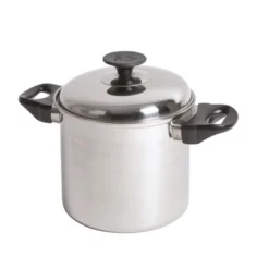 Voici une casserole robuste en acier inoxydable de la marque de camping Bo-Camp. Cette casserole de luxe dispose de poignées solides et d’un bouton résistant à la chaleur sur le couvercle. La casserole est étroite et haute, parfaitement adaptée à l’espace limité des réchauds de camping. Compatible avec le gaz, l’électrique et les plaques céramiques.