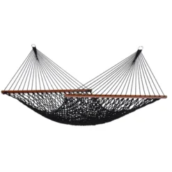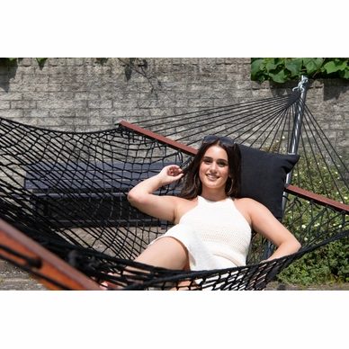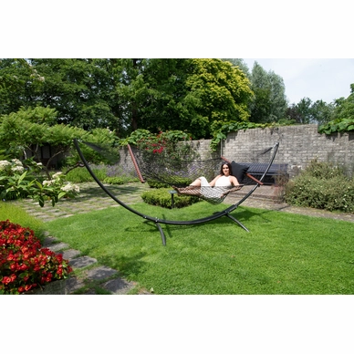 Ce superbe hamac provient de la série Family Rope de Tropilex. Le hamac est composé à 100 % de polyester recyclé. Cela rend le hamac très solide et durable et il durera donc longtemps. De plus, le tissu garantit que le hamac est doux et confortable. Le tissu peut supporter une averse légère, mais lorsque le hamac n’est pas utilisé, il est recommandé de le ranger dans un endroit sec. Le hamac peut soutenir un poids maximum de 160 kg et convient à un maximum de deux personnes. Il a une belle grande surface de 210 x 140 cm, sur laquelle vous pourrez vous détendre. Le hamac est fourni sans support ni kit de montage.