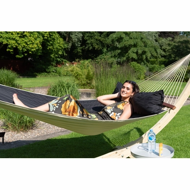 Ce beau hamac est issu de la série Family Vegas de Tropilex. Le hamac est fabriqué en oléfine, une combinaison spéciale de polyester dont le tissu léger est particulièrement adapté à une utilisation en extérieur. Cela rend le hamac très solide et durable, il durera donc longtemps. De plus, le tissu garantit que le hamac est doux et confortable. Lorsque le hamac n’est pas utilisé, il est recommandé de le stocker dans un endroit sec. Le hamac peut soutenir un poids maximum de 180 kg et convient à un maximum de deux personnes. Il a une belle grande surface de 210 x 140 cm, sur laquelle vous pourrez vous détendre. Le hamac est fourni sans support ni kit de montage.