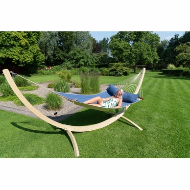 Ce beau hamac est issu de la série Family Vegas de Tropilex. Le hamac est fabriqué en oléfine, une combinaison spéciale de polyester dont le tissu léger est particulièrement adapté à une utilisation en extérieur. Cela rend le hamac très solide et durable, il durera donc longtemps. De plus, le tissu garantit que le hamac est doux et confortable. Lorsque le hamac n’est pas utilisé, il est recommandé de le stocker dans un endroit sec. Le hamac peut soutenir un poids maximum de 180 kg et convient à un maximum de deux personnes. Il a une belle grande surface de 210 x 140 cm, sur laquelle vous pourrez vous détendre. Le hamac est fourni sans support ni kit de montage.