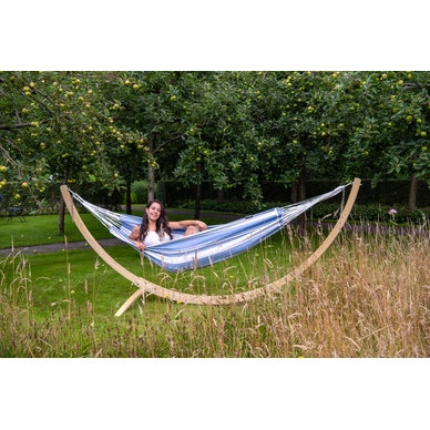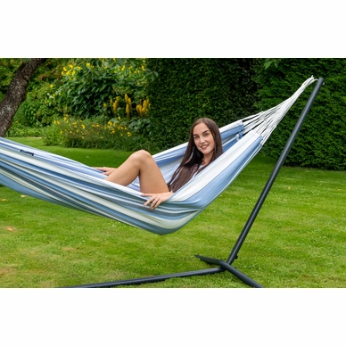 Ce hamac fin provient de la sĂ©rie Single Aruba de Tropilex. Le hamac est composĂ© Ă 100 % de polycoton, une combinaison spĂ©ciale de coton et de polyester avec un tissage plus Ă©pais. Cela rend le hamac très solide et durable, il dure donc longtemps. De plus, le tissu garantit que le hamac est doux et confortable. Le tissu convient Ă©galement pour une averse lĂ©gère, lorsque le hamac n’est pas utilisĂ©, il est recommandĂ© de ranger le hamac dans un endroit sec. Le hamac a un poids maximum de 120 kg et convient pour un maximum d’une personne. Le hamac a une belle grande surface de 200 x 140 cm, dans laquelle vous pourrez vous dĂ©tendre. Le hamac est fourni sans standard ni kit de montage.