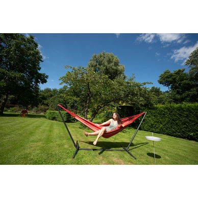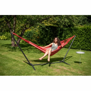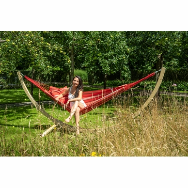 Ce hamac fin provient de la série Single Aruba de Tropilex. Le hamac est composé à 100 % de polycoton, une combinaison spéciale de coton et de polyester avec un tissage plus épais. Cela rend le hamac très solide et durable, il dure donc longtemps. De plus, le tissu garantit que le hamac est doux et confortable. Le tissu convient également pour une averse légère, lorsque le hamac n’est pas utilisé, il est recommandé de ranger le hamac dans un endroit sec. Le hamac a un poids maximum de 120 kg et convient pour un maximum d’une personne. Le hamac a une belle grande surface de 200 x 140 cm, dans laquelle vous pourrez vous détendre. Le hamac est fourni sans standard ni kit de montage.