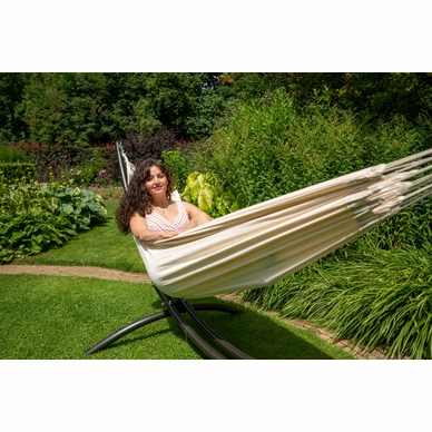 Ce superbe hamac provient de la série Single Plain de Tropilex. Le hamac est composé à 100 % de polycoton, une combinaison spéciale de coton et de polyester avec un tissage épais. Cela rend le hamac très solide et durable, il durera donc longtemps. De plus, le tissu garantit que le hamac est doux et confortable. Le tissu peut résister à une averse légère, mais lorsque le hamac n’est pas utilisé, il est recommandé de le ranger dans un endroit sec. Le hamac peut soutenir un poids maximum de 120 kg et convient pour un maximum d’une personne. Il a une belle grande surface de 200 x 140 cm, dans laquelle vous pourrez vous détendre. Le hamac est fourni sans support ni kit de montage.