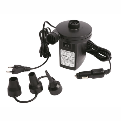 Le modèle Bo-Camp est une pompe électrique destinée à gonfler rapidement vos objets gonflables. Cette pompe peut injecter 230 litres d’air par minute et elle peut être branchée à une prise 12 volts comme à une 230 volts, de sorte que vous pouvez l’utiliser à la maison mais aussi en voiture quand vous faites du camping ou que vous allez à la plage. Ce modèle est livré avec plusieurs embouts adaptateurs.
