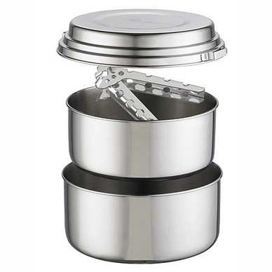 Ce set de camping en acier inoxydable est issu de la marque MSR. Il peut résister à des conditions extrêmes. Parfait pour une utilisation intensive, les aventuriers l’apprécieront particulièrement. Cette batterie se compose de 2 casseroles, d’un couvercle valable pour ces deux récipients, d’une poignée et d’une pochette de rangement.