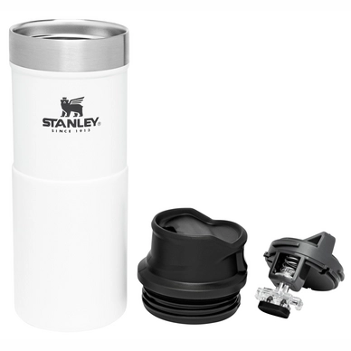 Cette tasse de voyage est de la marque Stanley de la série classique Trigger Action Mug 2.0. La tasse refroidit votre boisson pendant au moins 10 heures et la maintient au chaud pendant 7 heures. Il est facile de la garder propre en la mettant au lave vaisselle. La tasse est adaptée pour un porte-tasse dans la voiture, de sorte que vous pouvez facilement la prendre au travail. De plus, elle ne fuit pas et votre voiture restera propre.