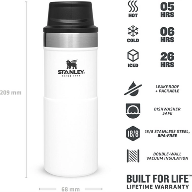 Cette Tasse isotherme est le compagnon de voyage idéal pour vos sorties en plein air ou vos randonnées. Avec sa double paroi isolante sous vide en acier inox, vos boissons restent à la température idéale pendant 5 heures pour les boissons chaudes, 8 heures pour les boissons froides et même 26 heures avec des glaçons. Cette mug est robuste et résistante aux chocs. Elle a un design élégant et intemporel qui s’adapte à tous les porte-gobelets de voiture. Elle ne fuit pas et dispose d’un bouton poussoir pour boire facilement. Elle a une capacité de 0,35 litre et est sans BPA. Enfin, elle est facile à nettoyer au lave-vaisselle. Cette mug isotherme est un choix pratique et durable pour toutes vos activités en plein air.